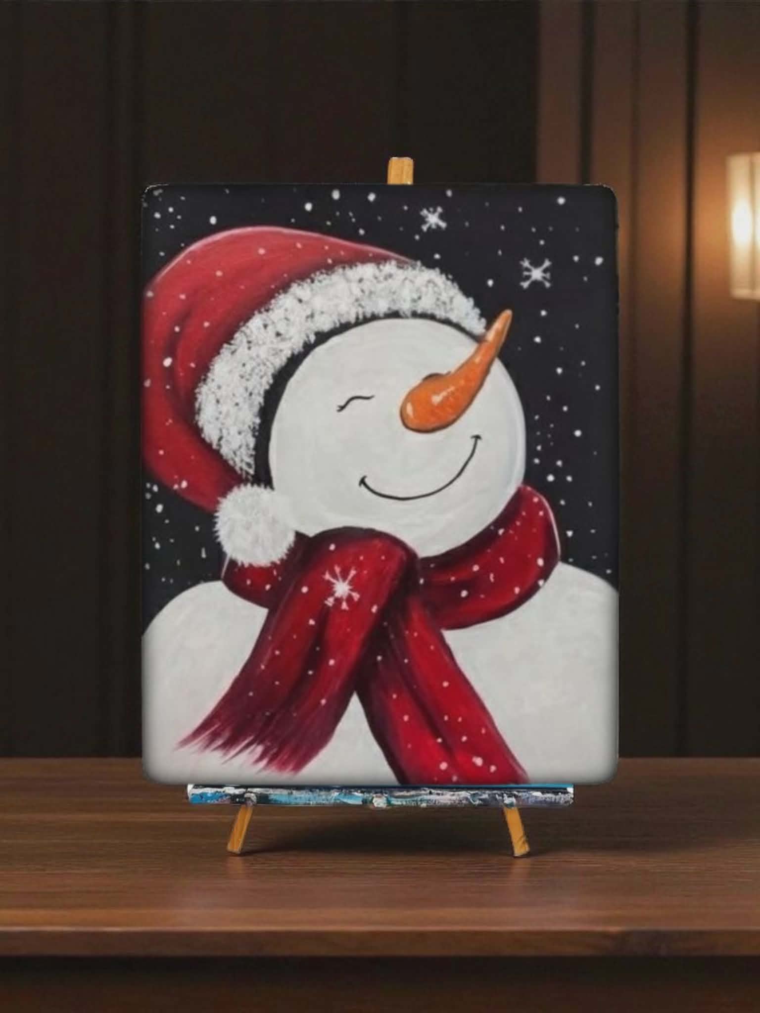 Join us for a creative night out at P.F. Chang’s! On Wednesday, December 17th, enjoy delicious appetizer specials and half-price bottles of wine before picking up a paintbrush. Doors open at 6:00 PM, and painting begins at 7:00 PM. Our instructor will guide you step by step in creating this joyful snowman, a great addition to your holiday decor —no experience needed, just bring your friends and have fun! 🎨🍷